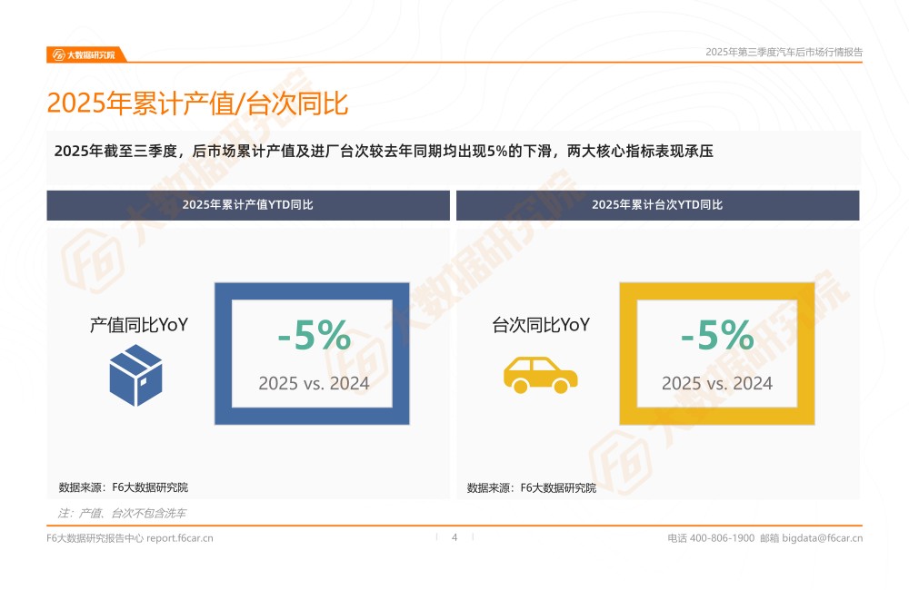 2025年截至三季度,后市场累计产值及进厂台次较去年同期均出现5%的下滑,两大核心指标表现承压。