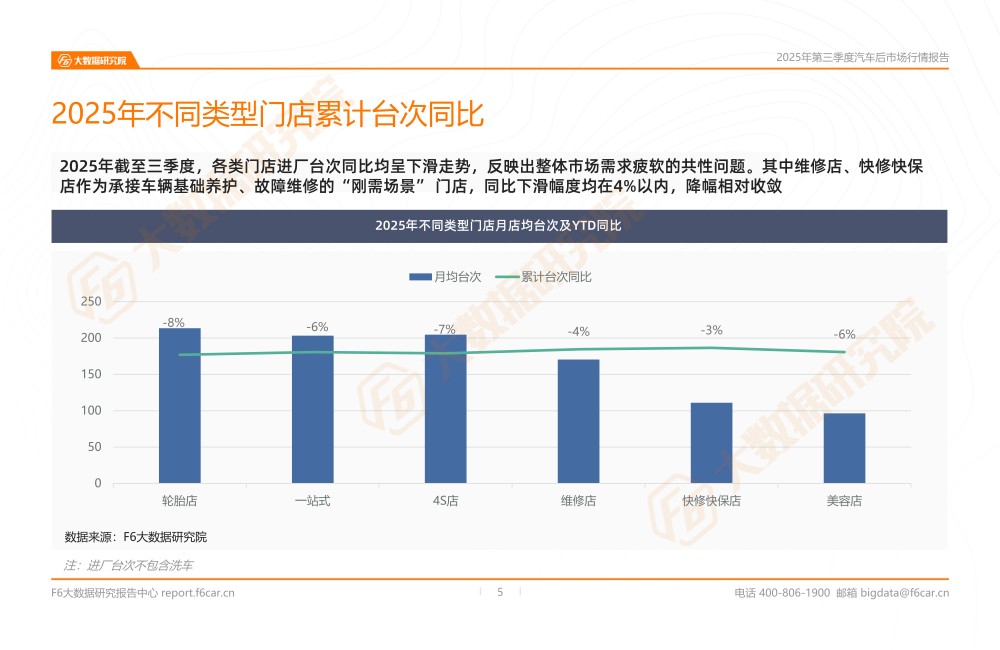 2025年截至三季度,各类门店进厂台次同比均呈下滑走势,反映出整体市场需求疲软的共性问题。