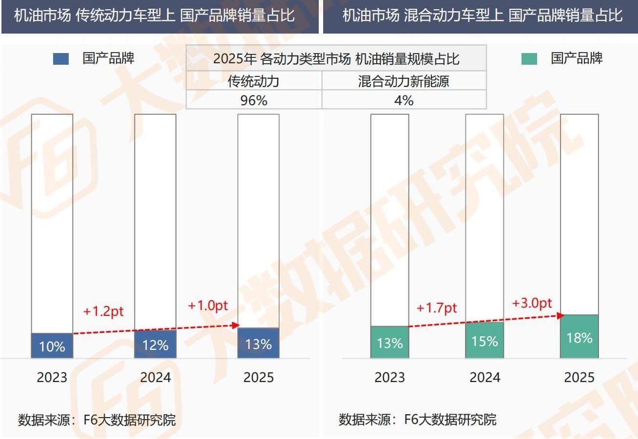 2025年机油市场中,传统动力车型以 96% 的销量规模占比占据绝对主导地位。