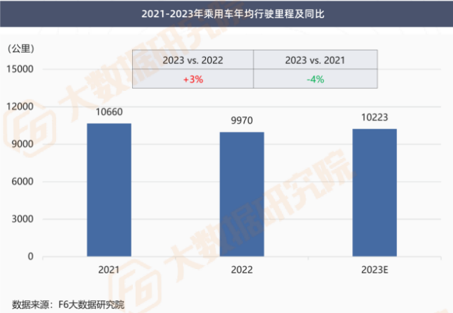 2023年行驶里程将回归1万公里以上,较2022年增长3%,但不及2021年水平