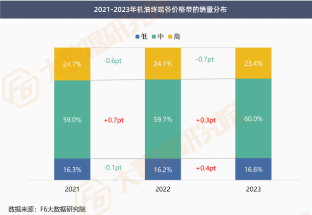 相较2021年,2023年机油中端市场份额增长1个百分点,市场竞争愈演愈烈